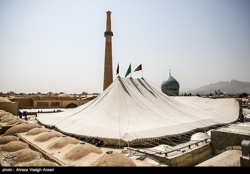اینجا امامزاده هارونیه اصفهان است، جمعه پیش از تاسوعا و عاشورای حسینی آئین برافراشته شدن بزرگترین خیمه حسینی برگزار میشود.