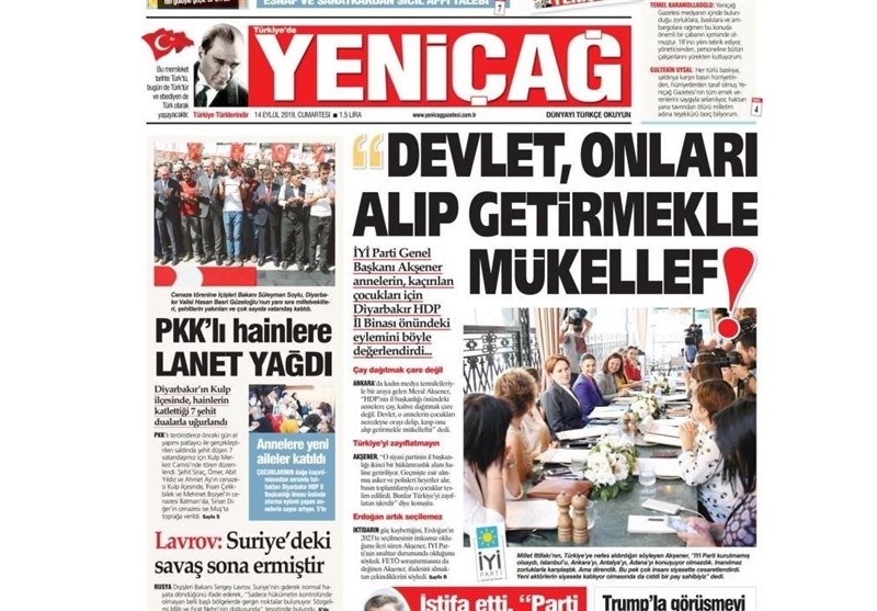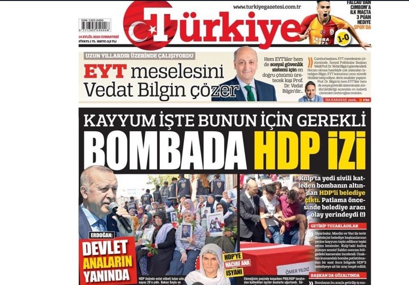 نشریات ترکیه در یک نگاه| اردوغان:دولت٬ از مادران دیاربکر حمایت می‌کند/ داوود اوغلو٬ آکپارتی را در هم کوبید