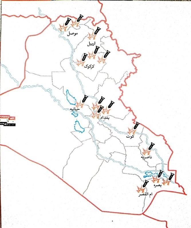 مناطقی که مورد هدف خلبانهای نیروی هوایی ارتش جمهوری اسلامی ایران در «کمان 99» قرار گرفتند: