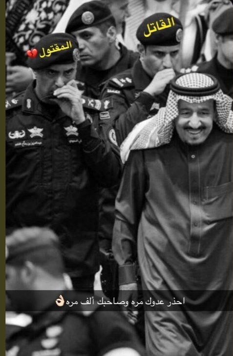 در عکس زیر، قاتل محافظ شخصی ملک سلمان و مقتول( عبدالعزیز الفغم) مشخص شده است.