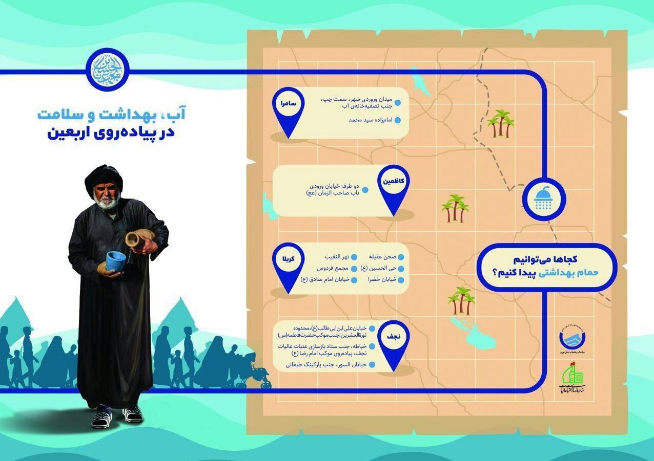 در تصویر زیر، آدرس برخی از نقاطی که زائران می توانند با مراجعه به آنها از سرویس حمام بهداشتی بهرهمند شوند، آورده شده است.
