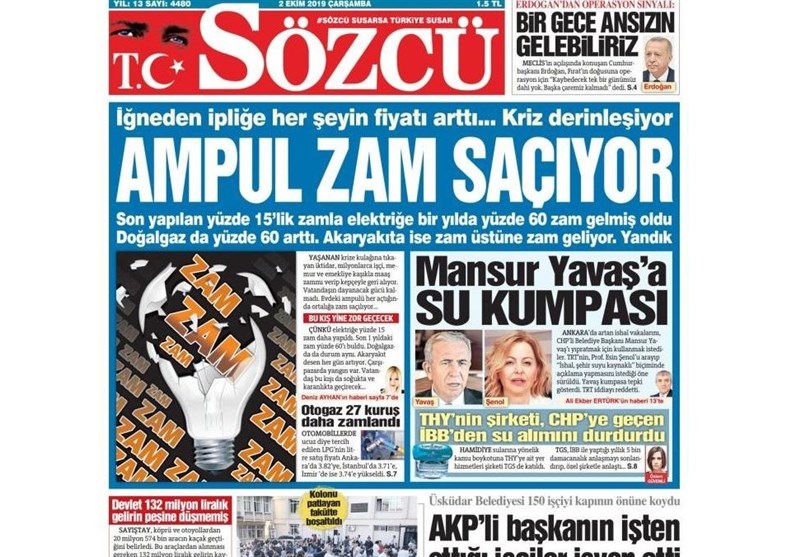 نشریات ترکیه در یک نگاه| اردوغان: ممکن است٬ شبی ناگهانی به شرق فرات حمله کنیم/ موج گرانی٬ بازنمی‌ایستد