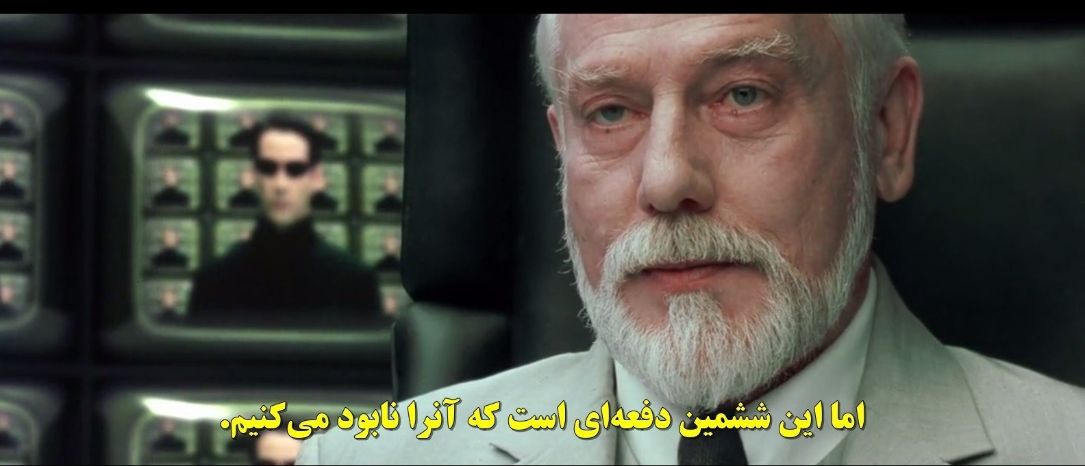 چون جهان روایی ماتریکس نخستین مسئله‌ای که مطرح می‌کند این است که حضور انسان در ماتریکس حضوری ذهنی است و کالبد او جای دیگری قرار دارد. حالا خداواره ماتریکس مطرح می‌کند که برای ششمین بار است که که نسخه ماتریکس را خلق کرده و در واقع شمشمین مرحله است که با ناهنجاری «منجی» مواجه شده است. خالق منجی را چنین توصیف می‌کند که  از دل تناقضات برنامه‌ریزی شده ماتریکس سربرآورده است.