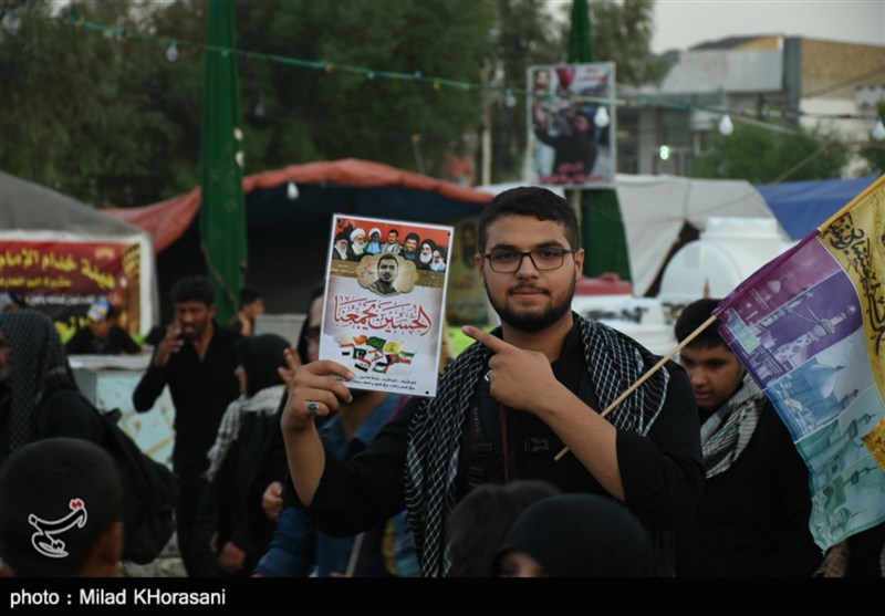 استقبال زائران اربعین از موکب فاطمیون در مرز شلمچه+عکس و فیلم