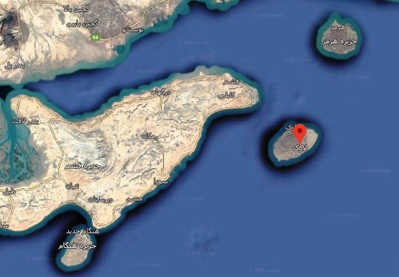 موقعیت جزیره لارک بین جزایر قشم، هرمز و ساحل شهر بندرعباس