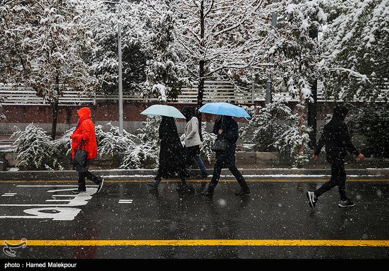 بارش باران و برف در استان‌های اردبیل، قزوین، البرز، تهران، سمنان، قم، مرکزی، همدان، چهارمحال و بختیاری، کهگیلویه و بویراحمد، جنوب لرستان، برخی نقاط یزد و اصفهان