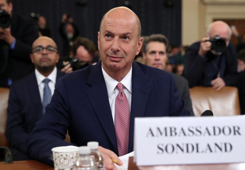به گزارش گروه بینالملل خبرگزاری تسنیم به نقل از رویترز، «گوردون ساندلند» سفیر آمریکا در اتحادیه اروپا صبح روز چهارشنبه به وقت محلی با حضور در چهارمین جلسه علنی تحقیقات استیضاح دونالد ترامپ رئیسجمهور آمریکا در کمیته اطلاعاتی مجلس نمایندگان این کشور، توضیحاتی را درباره ماجرای رسوایی موسوم به «اوکراین گیت» ارائه کرد.