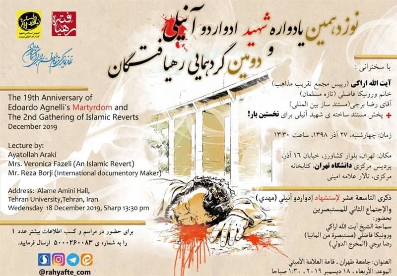 نوزدهمین یادبود شهید ادواردو آنیلی با سخنرانی آیتالله اراکی رئیس مجمع تقریب مذاهب همراه خواهد بود و طی آن ورونیکا فاضلی به عنوان یکی از تازهمسلمانان و همچنین رضا برجی، مستندساز بینالمللی، به سخنرانی خواهند پرداخت.