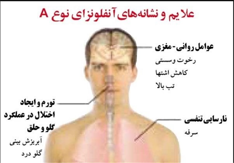 وی بیماری آنفلوآنزا را به دلیل ماهیت ویروسی که دارد نوعی بیماری تنفسی شدید دانست و علائم آن را که تا حدی مشابه هم خانواده این بیماری یعنی سرماخوردگی است تب شدید، بدن درد شدید، کوفتگی شدید عضلات و علائمی در گلو و زبان برشمرد.