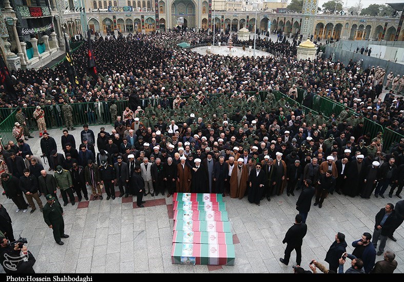 مراسم تشییع شهدای قمی سانحه هوایی از نگاه دوربین