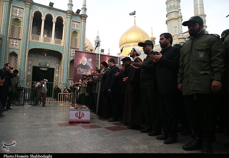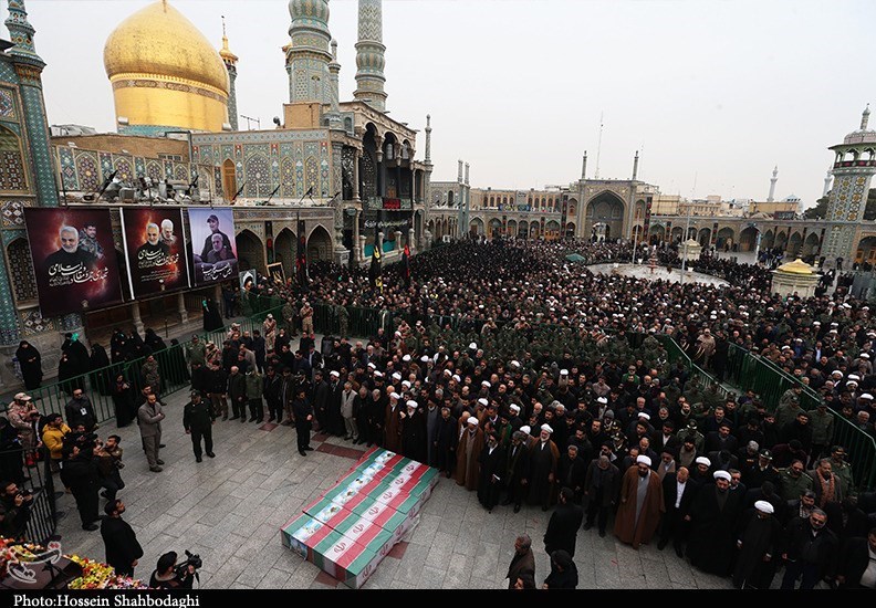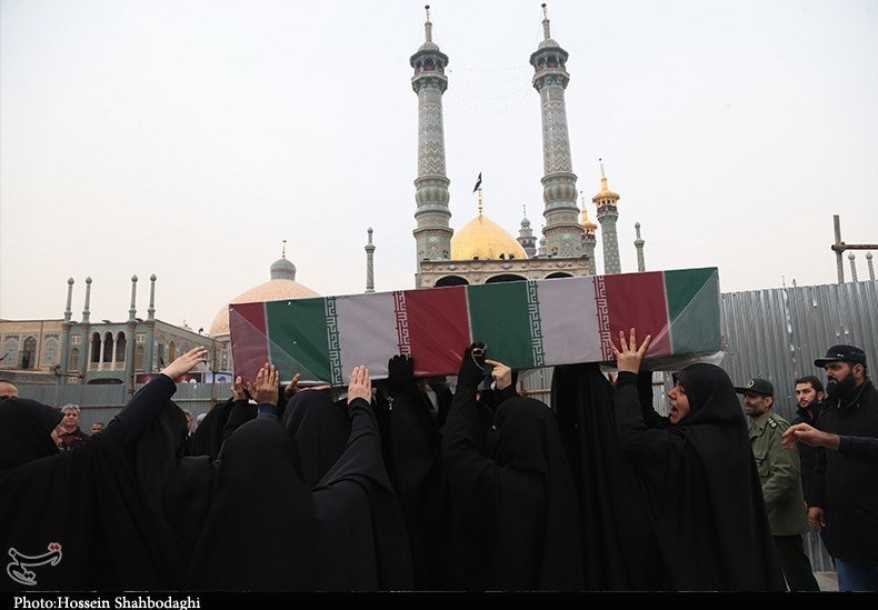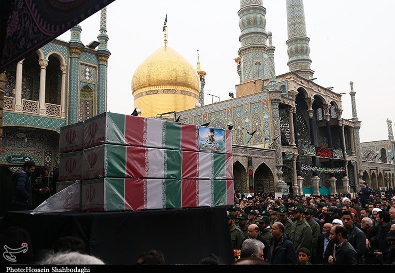 مراسم تشییع شهدای قمی سانحه هوایی برگزار و پیکرهای پاک شش شهید در حرم مطهر کریمه اهل‌بیت(س) به خاک سپرده شد.