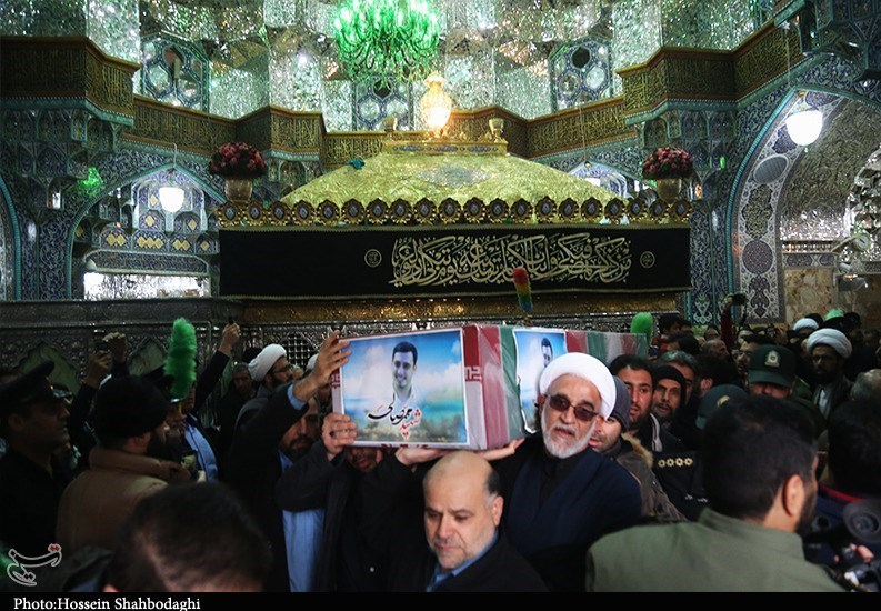 پیکرهای پاک این شهدا با حضور مسئولان کشوری و استانی بعد از اقامه نماز توسط آیت‌الله نوری همدانی از مراجع تقلید در حرم کریمه اهل‌بیت(س) آرام گرفت.