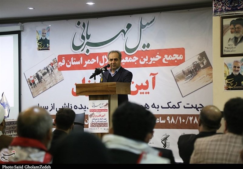 آیین گلریزان کمک به هم‌وطنان آسیب‌دیده ناشی از سیل در قم به روایت تصویر