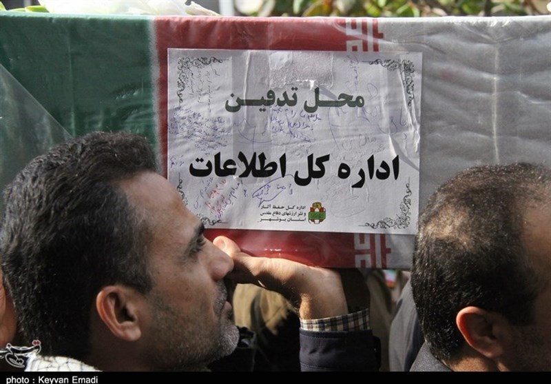 پیکر این شهید والامقام از بسیج مرکزی تا مصلای جمعه  بر دستان مردم ولایت‌مدار و شهیدپرور بوشهر تشییع و سپس در اداره‌کل اطلاعات استان بوشهر به خاک سپرده شد.