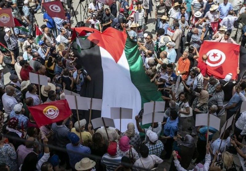 به گزارش گروه بین الملل خبرگزاری تسنیم به نقل از پایگاه خبری شهاب، هزاران تونسی در مخالفت با طرح معامله قرن آمریکا و در همبستگی و حمایت از مردم فلسطین در مقابله با آن تظاهرات کردند.