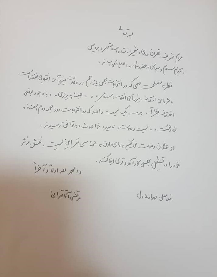 مردم شریف تهران و ری و شمیرانات و اسلامشهر و پردیس