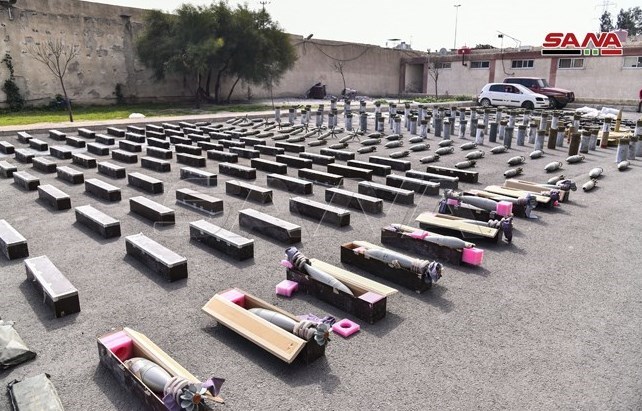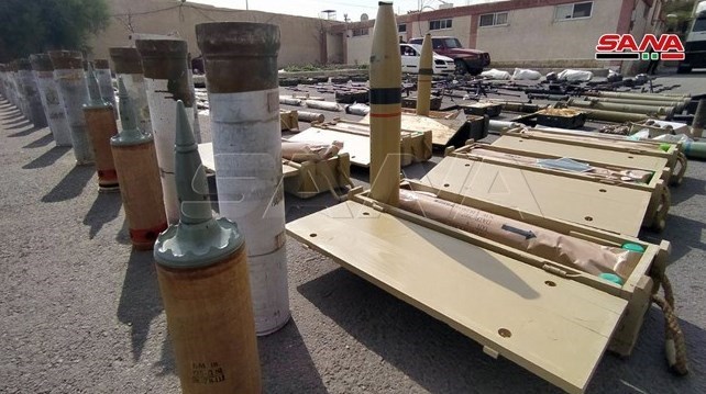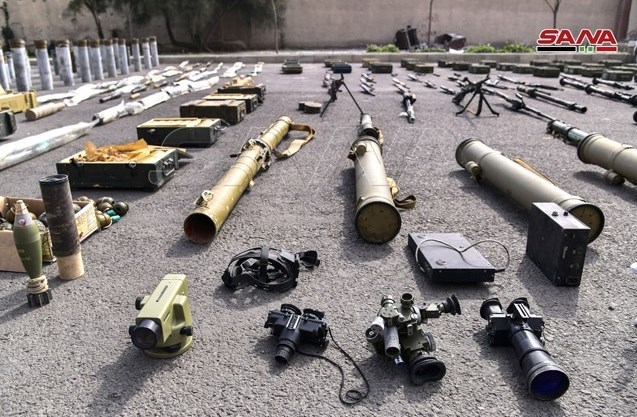 انواع سلاحها، مهمات، یک فروند پهپاد برای شناسایی مواضع ارتش سوریه، دستگاه پخش مستقیم ماهوارهای، گلولههای تانک، توپ و خمپاره و انواع فشنگ و نیز موشکهای ضد زره از جمله تسلیحات به جا مانده از گروههای تروریستی بوده است.
