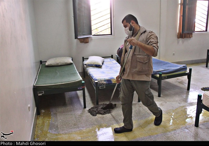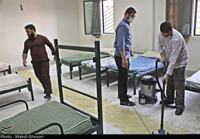 ایجاد محل استقرار بیماران بهبود یافته کرونایی در قم از قاب دوربین