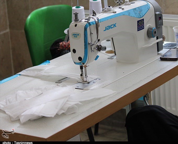 راه‌اندازی کارگاه تولید ماسک در قرارگاه شهید قاسمی قم به روایت تصویر