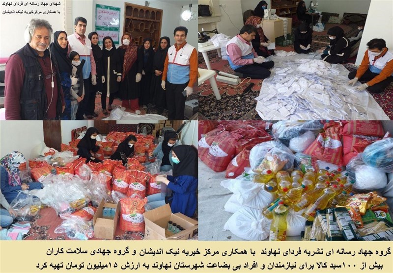 هفته نامه محلی فردای نهاوند با شیوع کرونا با کمک خانواده، پزشک خیر نهاوندی دکتر تکلو، گروه جهادی شهدای رسانه فردای نهاوند، گروه جهادی سلامت کاران امام رضا(ع) و مرکز خیریه نیک اندیشان خدمت رسانی به مردم را از اسفند ماه شروع کرده و تا ماه مبارک رمضان نیز ادامه خواهد داد.