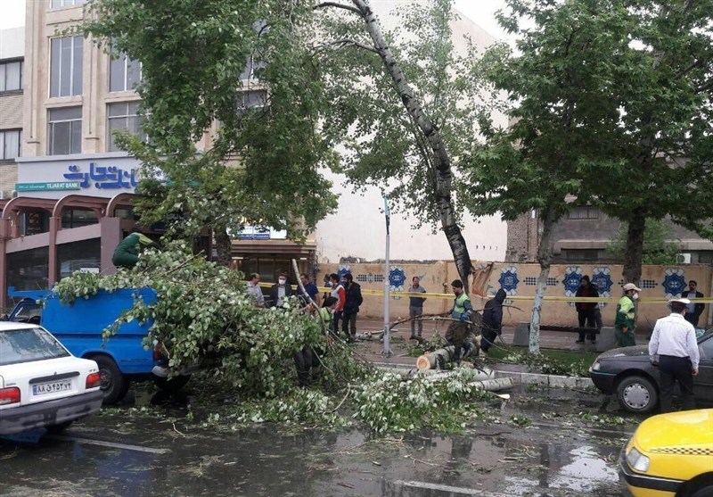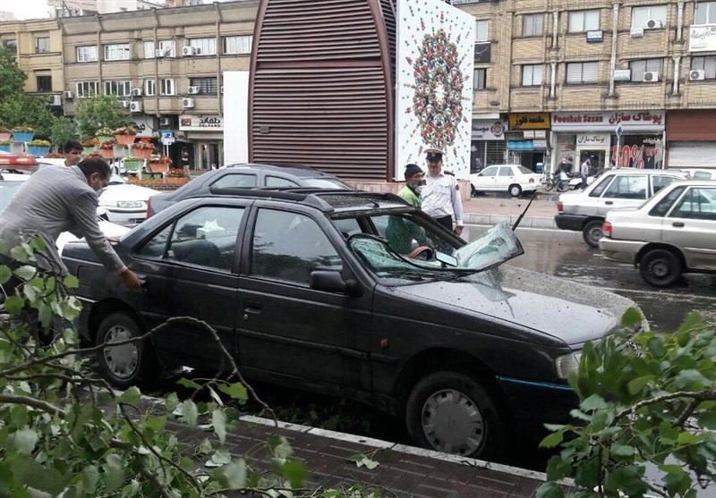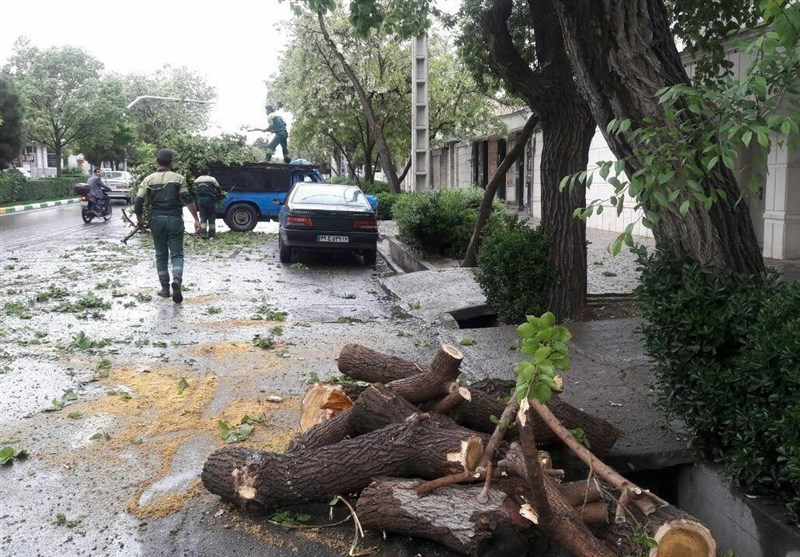 طوفان و باران شدید در مشهدمقدس درخت‌ها را بر سر ماشین‌ها انداخت +تصاویر