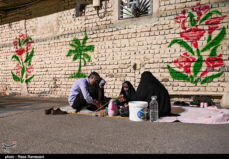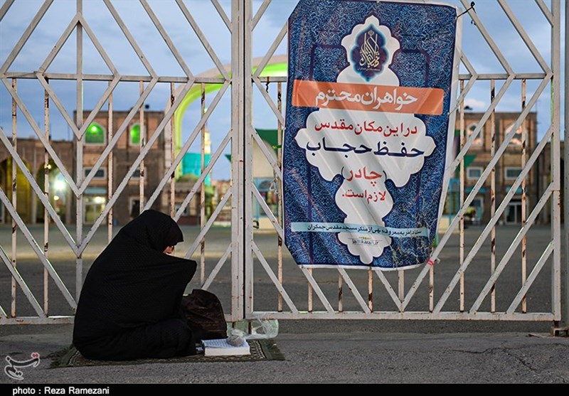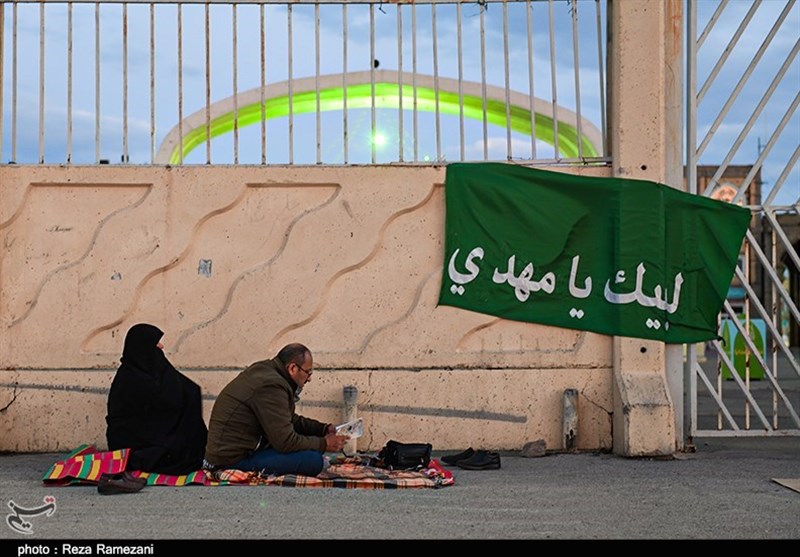 زائران و مجاوران مسجد مقدس جمکران در نخستین شب چهارشنبه ماه مبارک رمضان پشت درب های بسته مسجد سفره افطار پهن کردند.