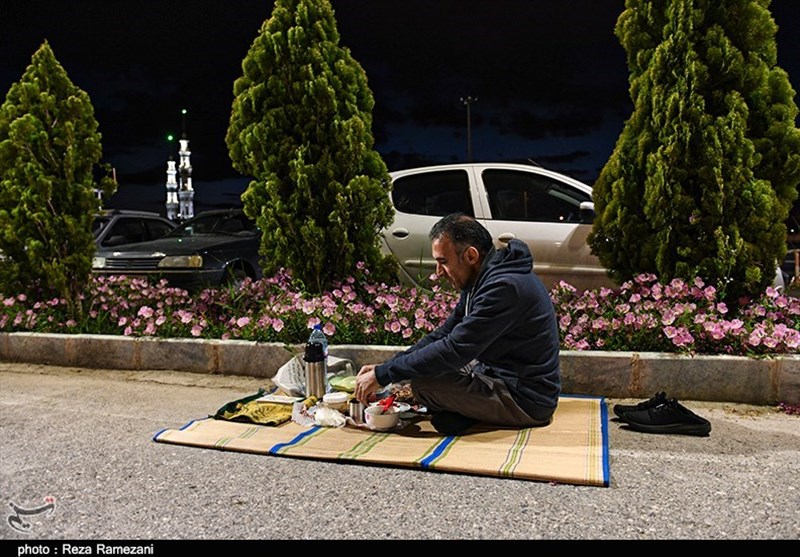سفره افطار در پشت درهای بسته مسجد مقدس جمکران به روایت تصویر