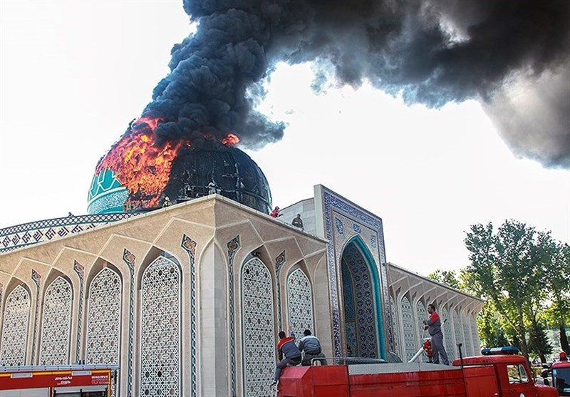 گنبد مسجد ستاد فرماندهی نیروی انتظامی دچار آتش‌سوزی شد.