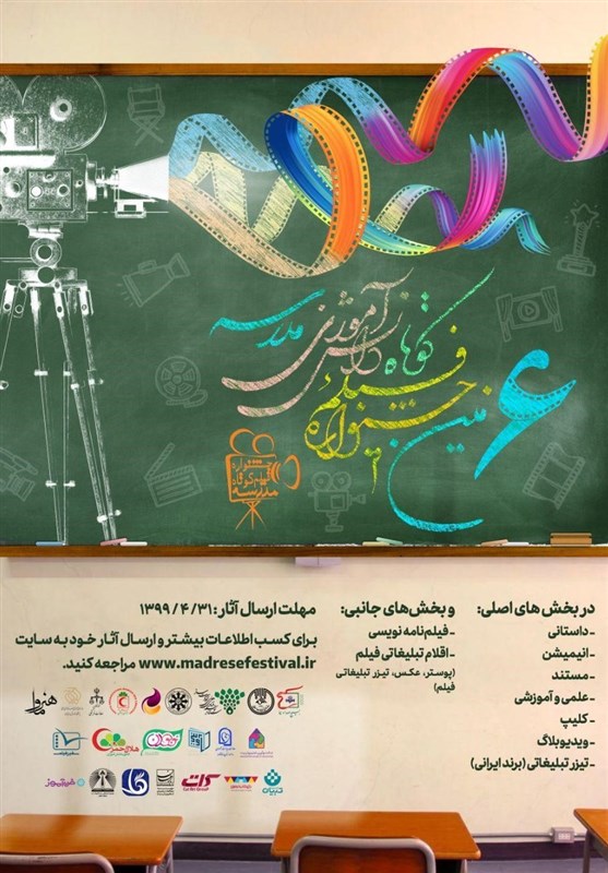ششمین دوره‌ جشنواره فیلم کوتاه مدرسه برای کلیه‌ دانش‌آموزان در تمامی مقاطع تحصیلی در سال 1398-1399 برگزار می‌شود. دانش‌آموزان مهلت دارند آثارخود را تا سی و یکم تیرماه در سایت جشنواره به نشانی www.madresefestival.ir  بارگذاری کنند.