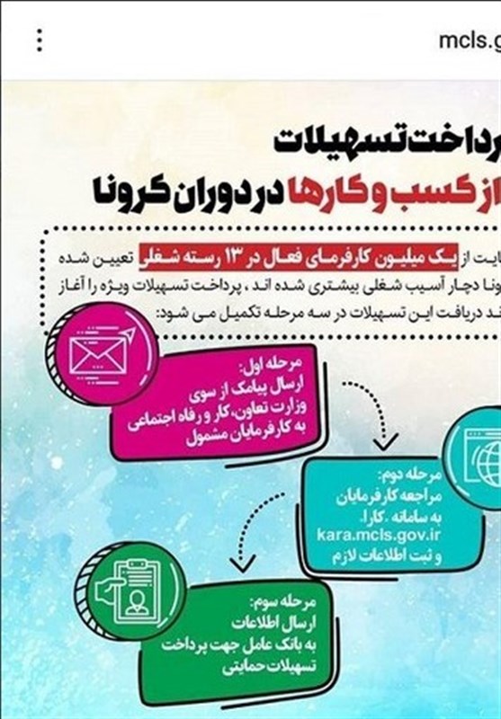 وی ادامه داد: بر مبنای اطلاعات موجود در سازمان تامین اجتماعی، یک میلیون کارگاه دارای شماره و ثبت شده، با 3 میلیون و 200 هزار کارگر و نیروی انسانی مشمول این مصوبه میشوند و این واحدها به شرط قبول تعهد حفظ نیروی کار خود که بر اساس فهرست بیمه ارسالی به تامین اجتماعی در ماههای دی و بهمن سال 1398 محاسبه میشود، مشمول دریافت پیامک مراجعه به سامانه کارا و ثبت نام دریافت وام خواهند شد.