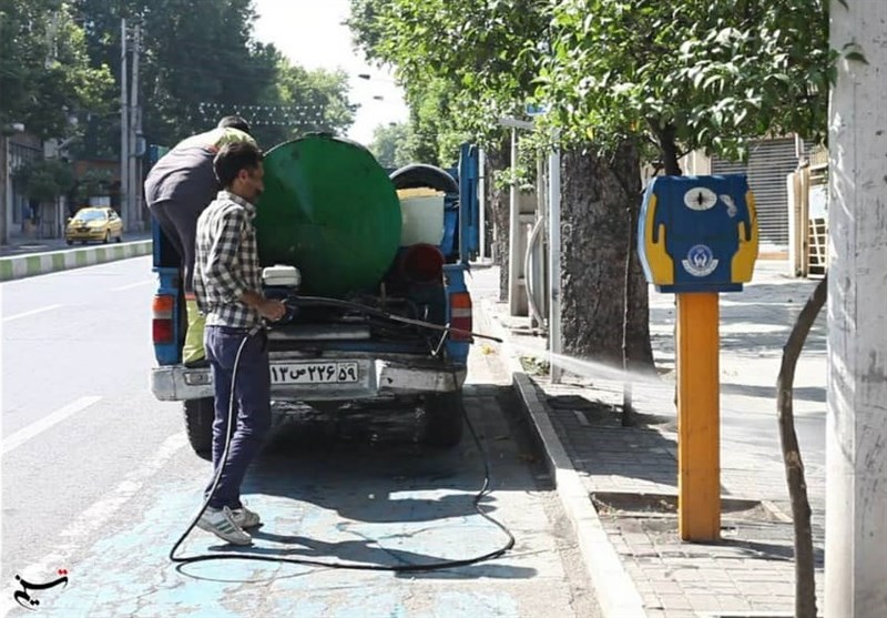 ضدعفونی و گندزدایی اماکن عمومی و معابر شهری گرگان برای مقابله با کرونا+تصاویر