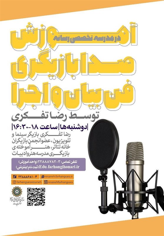 به گزارش خبرگزاری تسنیم، مدرسه تخصصی رسانه با رویکرد برگزاری دورههای تخصصی هنر و رسانه، دوره «صدابازیگری، فن بیان و اجرا» را با حضور «رضا تفکری» شنبه ساعت 16:30 تا 18 برگزار میکند.