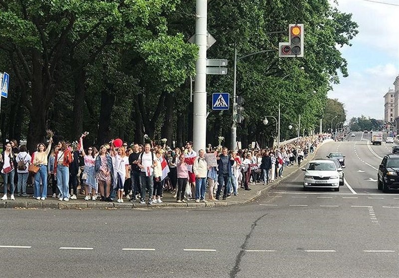 به گزارش گروه بینالملل خبرگزاری تسنیم به نقل از خبرگزاری «نووستی»، هزاران نفر از معترضین به نتیجه انتخابات ریاست جمهوری در بلاروس، عصر روز شنبه، بار دیگر در میدان استقلال شهر مینسک، پایتخت بلاروس جمع شدند. در این گردهم آیی حدود 3 تا 4 هزار نفر شرکت داشتند. آنها پرچمهای قرمز و سفید را در دست گرفته، آواز جمعی خوانده و شعار "زنده باد بلاروس" را سر دادند. این تجمع در اواخر شب گذشته به پایان رسید. نیروهای انتظامی وزارت کشور بلاروس در این تظاهرات، دخالتی نکردند.