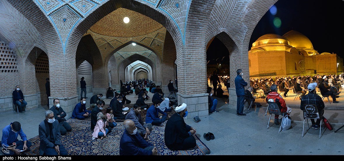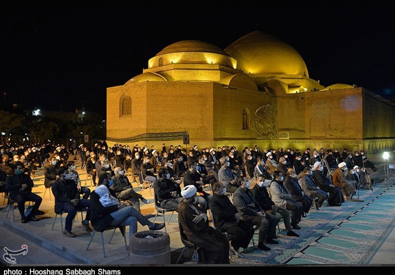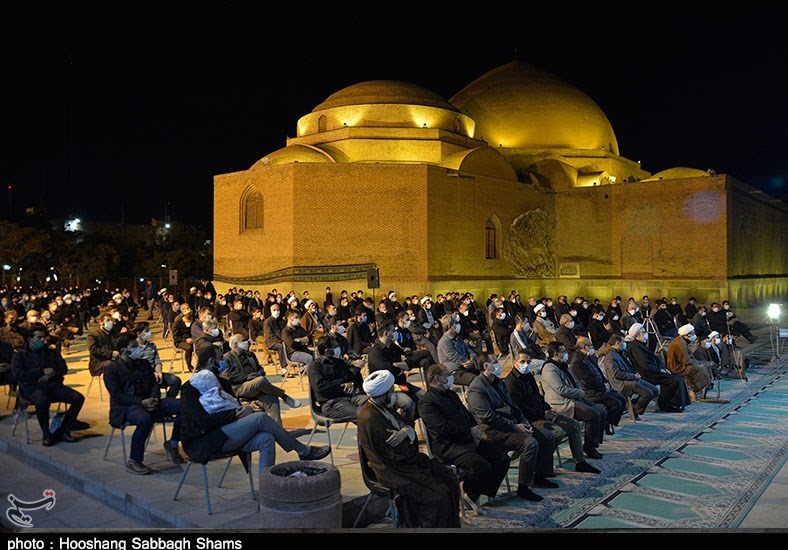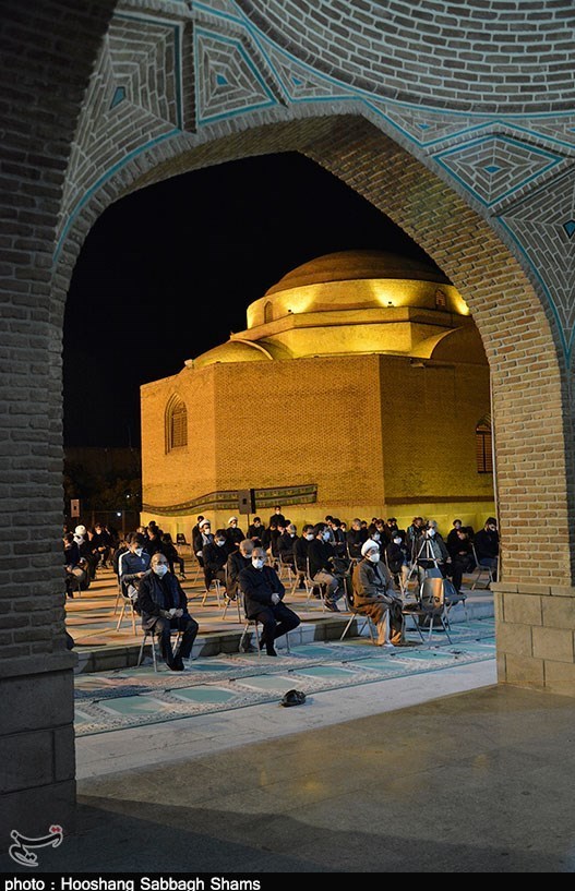 به گزارش خبرگزاری تسنیم از تبریز، هیئت حسینی "فیروزه جهان اسلام" مسجد کبود تبریز هر شب دهه اول محرم عزاداری سید و سالار شهیدان ابا عبدالله الحسین (ع) را با رعایت فاصلههای فیزیکی و دستورالعملهای بهداشتی در محوطه این مسجد تاریخی و افتخار جهان اسلام برگزار میکند.