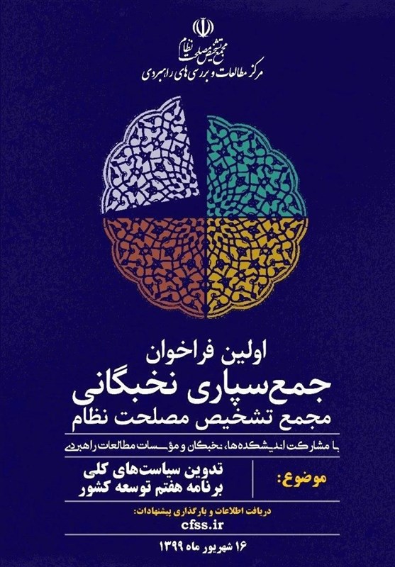 به گزارش گروه سیاسی خبرگزاری تسنیم، اولین فراخوان جمع سپاری نخبگانی مجمع تشخیص مصلحت نظام با موضوع تدوین سیاستهای کلی برنامه هفتم توسعه کشور روز یکشنبه (16 شهریور) برگزار میشود.