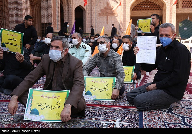تجمع کنندگان در این مراسم با در دست داشتم پرچم های یا "محمدرسول الله" و با فریاد "صلی علی محمد درود بر محمد" و "لبیک یا پیامبر" ضمن محکومیت اقدام قبیح توهین به ساحت مقدس پیامبر خاتم (ص) و کتاب آسمانی بار دیگر با آرمان های انقلاب اسلامی، مقام معظم رهبری و شهیدان بیعتی دوباره بستند.