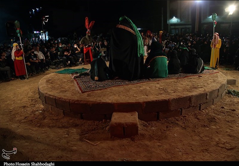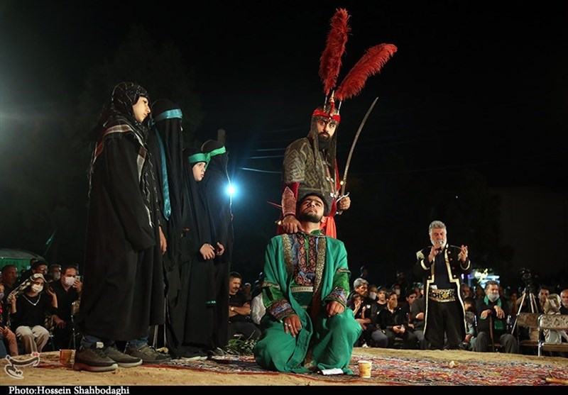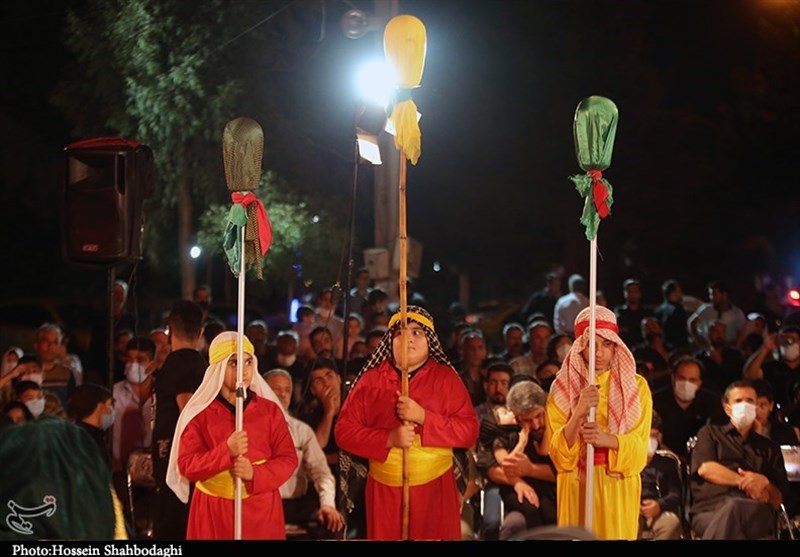 گروه استان ها-مراسم تعزیه‌خوانی حضور کاروان اسرای حسینی در شام در شب‌های ماه صفر در فضای باز در قم اجرا می‌شود.