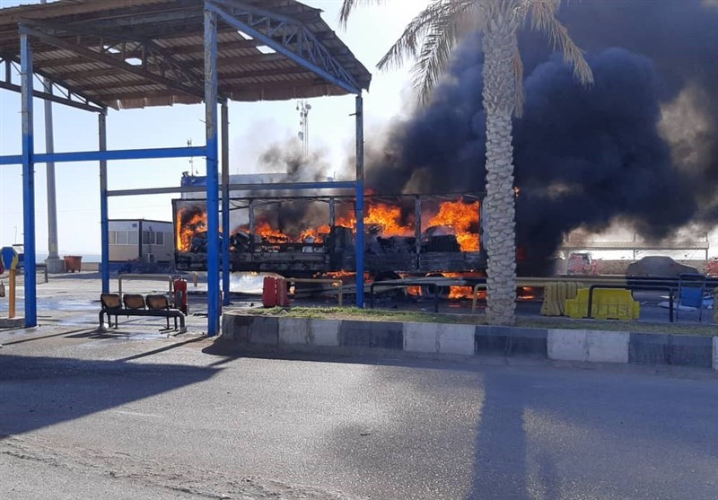 گروه استان‌ها – یک دستگاه تریلر حامل کانتینر 40 فوتی انواع بار به مقصد جزیره قشم در بندرپل شهرستان خمیر در آتش سوخت.