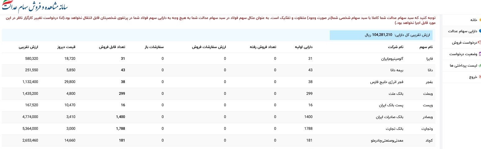 بر این اساس ارزش سهام عدالت نسبت به اوج خود از تیر ماه تاکنون حدودا به نصف کاهش یافته است.