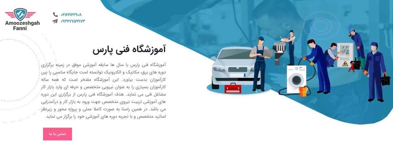 آموزشگاه فنی پارس یکی از بهترین آموزشگاه های فنی حرفه ای در کشور است که به صورت کاملا عملی و تخصصی در کارگاه های مجهز دوره های گوناگون برق، الکترونیک و مکانیک را برگزار کرده و همه ساله کارآموزان بسیاری را وارد بازار کار مشاغل فنی در ایران و سایر کشورها می نماید.