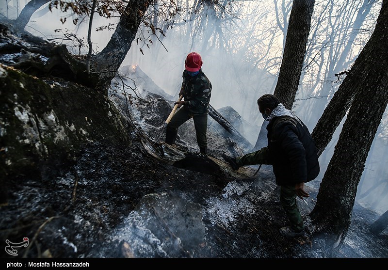 وی افزود: با توجه به اینکه منطقه آتش گرفته در دامنه و صخره قرار دارد، درختان سوخته به‌صورت زغال سرازیر می‌شوند و آتش جدیدی ایحاد می‌کنند، این اتفاق سبب ایجاد دو جبهه آتش شد که یک جبهه را مهار و در حال مهار جبهه دیگر هستیم.