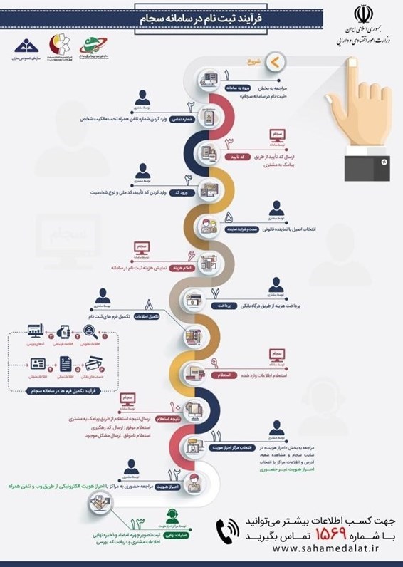 به گزارش خبرگزاری تسنیم، مطابق با پیش بینی انجام شده در مرحله نخست، برای ثبت نام بورس و سامانه سجام، متقاضیان می توانند عبارت سامانه سجام را در صفحه مرورگر خود جست و جو کرده یا از طریق آدرس sejam.ir وارد صفحه اصلی شده و به بخش ثبت نام در سامانه مراجعه کنند. در مرحله دوم، شماره تلفن همراهی که تحت مالکیت متقاضی قرار دارد، ثبت می شود. پس از این مرحله، یک کد تایید به شماره تلفن همراه ثبت شده در سایت ارسال می شود. بعد از ارسال کد، متقاضی با وارد کردن آن باید اطلاعات مربوط به کد ملی و نوع شخصیت را در سامانه وارد کند.