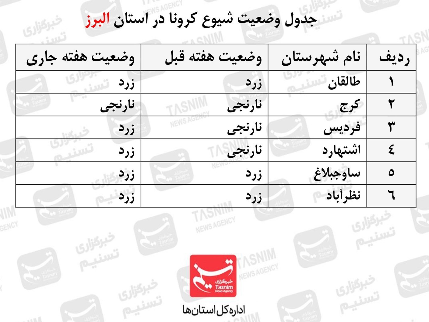 به هرحال با نگاهی گذرا به آمارهای منتشر شده در هفته اول دی ماه 1399 در میابیم وضعیت استان البرز اگرچه به سمت بهبودی نسبی حرکت کرده و شرایط و رنگبندی کرونایی بهبود یافته است اما همانطور که قبلاً اشاره شد به دلیل جابجایی بسیار بالای جمعیت میان دو استان البرز و تهران شکنندگی شرایط کاملاً محسوس و قابل لمس است و به همین دلیل مسئولان بهداشت و درمان استان تأکید دارند ساکنان استان البرز باید نسبت به رعایت پروتکلهای بهداشتی جدیت بیشتری داشته باشند. (آمار تفکیکی در این استان اعلام نمیشود.)