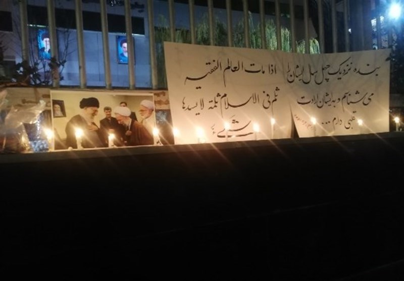 دانشجویان با در دست داشتن تصاویری از آیت الله مصباح یزدی و سخنان وی نسبت به از دست دادن این عالم گرانقدر ابراز ناراحتی کردند.