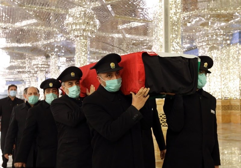 نوای ملکوتی قرآن کریم و ذکر مصیبت ذاکران و مداحان اهلبیت(ع) در این فضای روحانی طنینانداز بود و خادمان با ذکر یا امام رضا(ع)، یا اباعبداللهالحسین(ع) و یا صاحبالزمان(عج) پیکر این عالم مجاهد را در صحن جامع تشییع کردند.