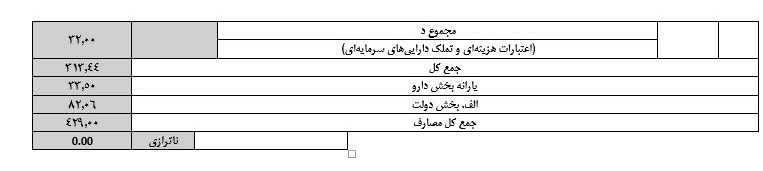 در این جدول ارزیابی ارقام ردیفها و نحوه انعکاس منابع و مصارف جدول تبصره (14) در بودجه عمومی وجود دارد.