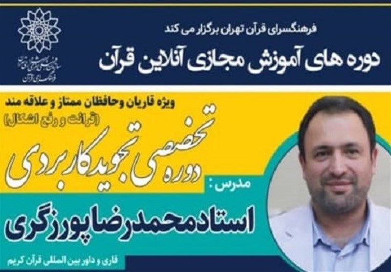 به گزارش تسنیم، دوره تخصصی تجوید کاربردی قرآنکریم با تدریس محمدرضا پورزرگری، داور و قاری بینالمللی کشورمان بهصورت آنلاین از طریق سامانه قرآنلند (سامانه آموزش آنلاین فرهنگسرای قرآن) وابسته به سازمان فرهنگی ـ هنری شهرداری تهران همچنان در حال برگزاری است.