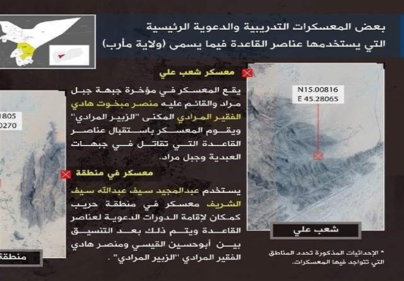 این سازمان اعلام کرد: ولایت مأرب القاعده اردوگاه‌هایی دارد که روستای «الخثلة الفقراء» به‌مثابه کانون اصلی آنهاست. اردوگاه شعب در جبهه «جبل مراد» است که از اعضای القاعده که کنار مزدوران در جبهه‌های «العبدیه» و «جبل مراد» می‌جنگند، پذیرایی می‌کند.