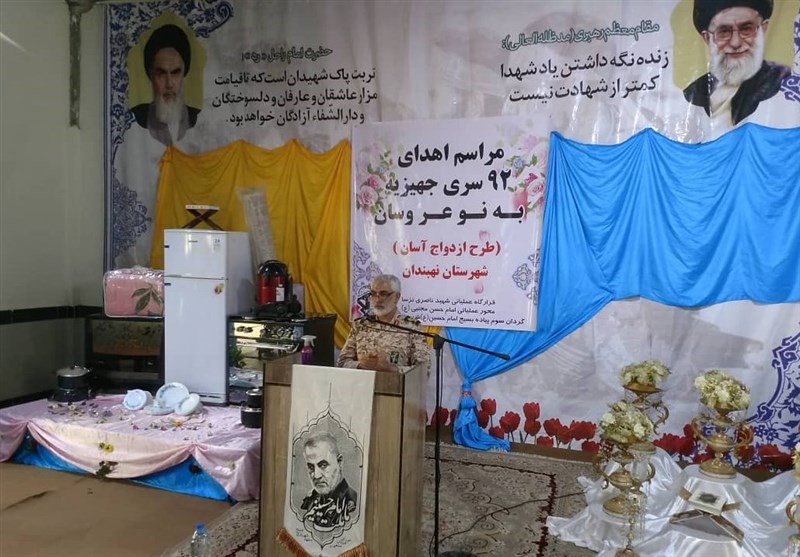 گروه استان‌هاـ قرارگاه عملیاتی شهید ناصری در راستای ترویج ازدواج آسان طی مراسمی در نهبندان 92 سری جهیزیه را بین زوج‌های جوان نیازمند توزیع کرد.
