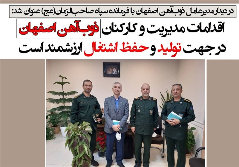 به گزارش خبرگزاری تسنیم، در این دیدار که سرهنگ محمدی فرمانده سپاه ناحیه لنجان و سرهنگ مختاری فرمانده بسیج ذوب آهن اصفهان نیز حضور داشتند، فرمانده سپاه صاحب الزمان (عج) ضمن قدردانی از اقدامات و فعالیت های موثر مدیریت و کارکنان ذوب آهن اصفهان در جهت تولید و حفظ اشتغال، با اشاره به خدمات این مجتمع بزرگ صنعتی در دوران دفاع مقدس گفت: تلاش و همت این پولادمردان در خط تولید، همانند مجاهدت های دوران دفاع مقدس است .وی ضمن حمایت از تولید و اشتغال در این شرکت، اظهار امیدواری نمود که ذوب آهن اصفهان بتواند به جایگاه واقعی خود دست یابد.